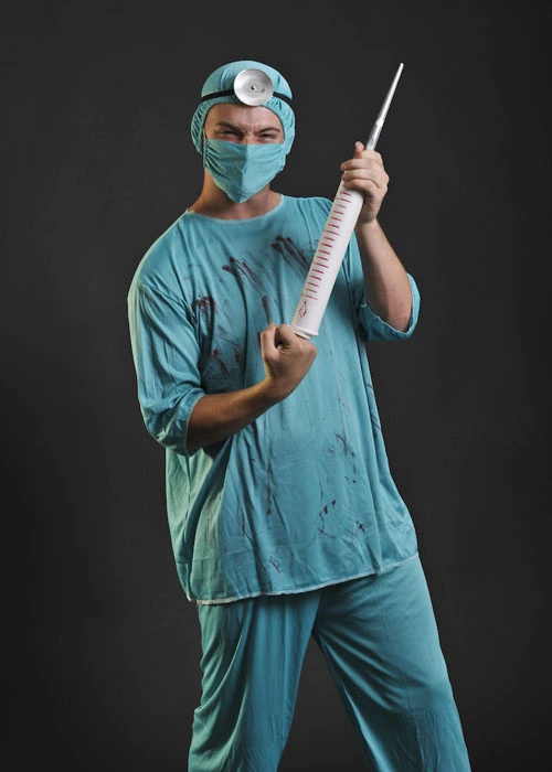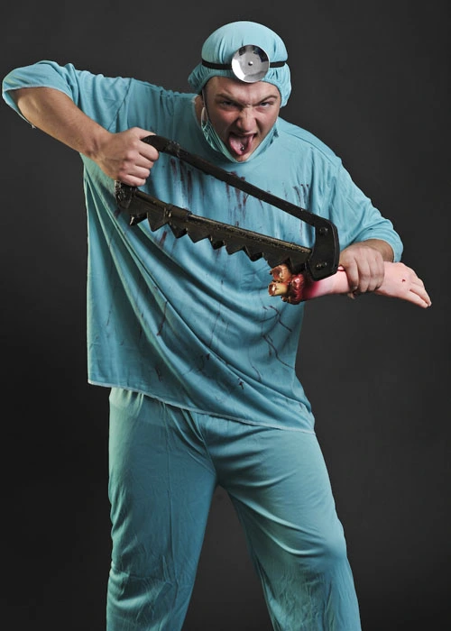 Our gruesome surgeon Halloween costume includes a pair of trousers, top, hat and face mask! Comes in one standard size to fit up to a 42 inch chest.