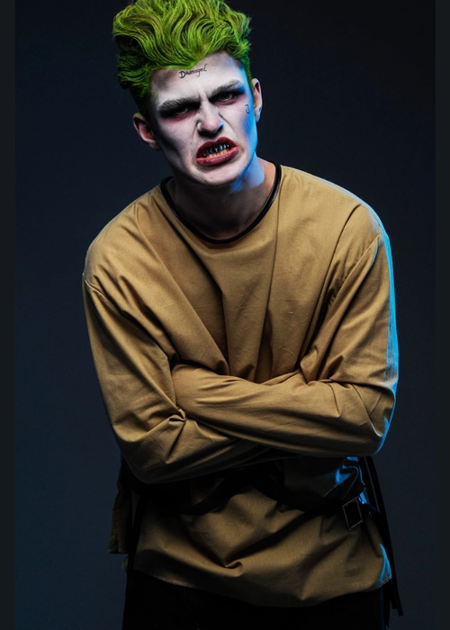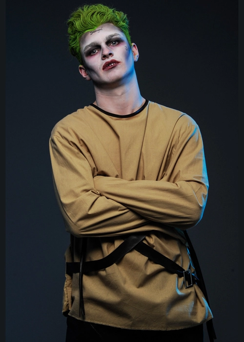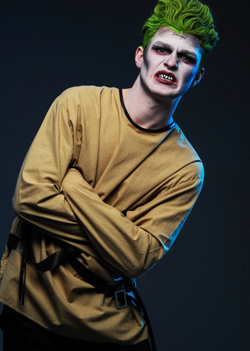 This fantastic Halloween fancy dress costume is inspired by The Joker and features a light brown fancy dress straight jacket with brown leather look straps. One size.