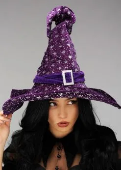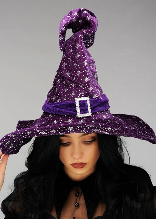 A great quality purple Halloween witch hat! Features a silver stars and moon pattern along with a buckle!