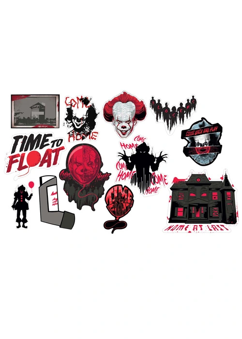 Fantastic Pennywise horror movie decorations for a Halloween party, this pack of 12 assorted size and design It Chapter 2 card cut-outs come in a pack of 12.