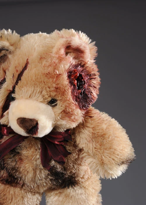 This fantastic fake fur prop zombie teddy bear with gruesome wound and fake blood details is the ultimate Halloween accessory! PLEASE DO NOT WASH.