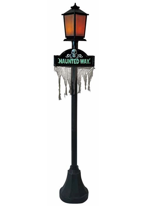 A fantastic prop for Halloween party or haunted house, this light up horror lamppost decoration features sound and street sign. This prop requires 3 x AA batteries which are not included.
