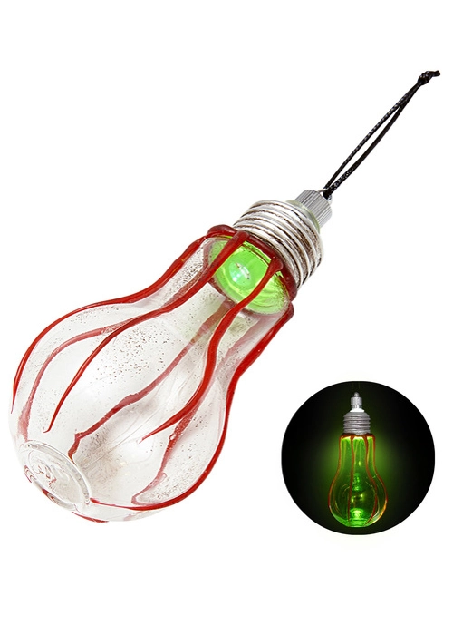 A fantastic accessory for Uncle Fester or as a prop for a Halloween party, this prop light bulb features fake blood drip marks and light up with a green light, measures 11cm.