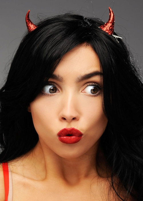 A cute set of bright red glitter clip on devil horns on hair clips! A great value item to enchance your Halloween costume.