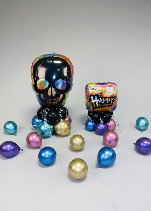 Inflated Iridescent Skull Halloween Balloon Centrepiece Set