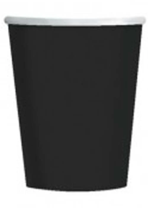 Party celebration jet black paper cups. Holds 266ml. Pack of 8.