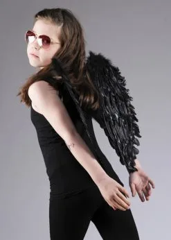 A gothic style set of kids black fancy dress feather angel wings! Measures 50cm x 50cm. Supplied with elastic straps.