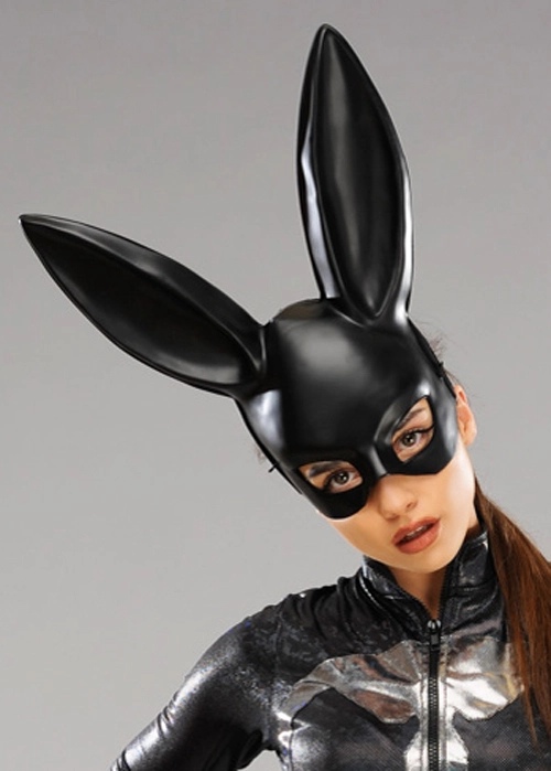 Adult ladies size cute gothic woodland anmal fancy dress black moulded plastic bunny rabbit mask with ears, comes on an elastic strap for easy wear.