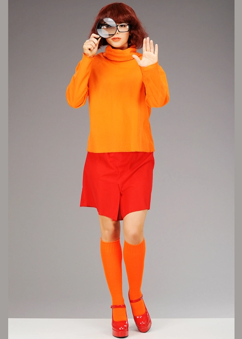 This official Scooby Doo Velma costume includes short red skirt, orange top, wig and glasses. One size to fit a UK 10-14. A great look for any Halloween party!