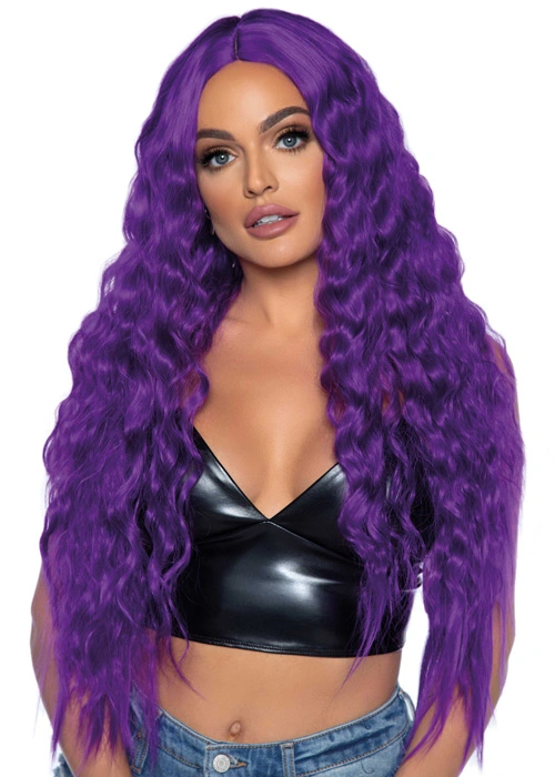 A fantastic quality womens wig that is perfect for a gothic vampire or wicked witch costume, this absolutely gorgous extra long rich purple wavy Halloween wig with a centre parting comes on an adjustable and stretchy size net for the perfect fit.