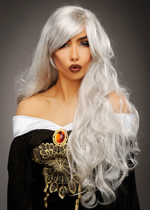 Womens Deluxe Halloween Long Grey Wavy Wig
