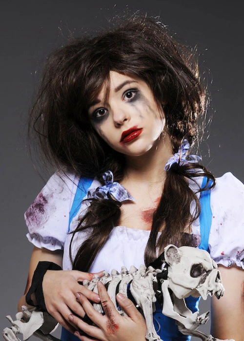An incredible undead zombie Dorothy wig, features gingham bow details, faux skin parting and an adjustable wig cap net. Can be styled and is heat resistant up to 120 degrees centigrade can also be hand washed.