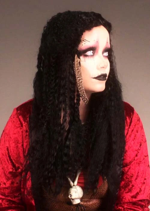 Womens Halloween Black Crimped Voodoo Witch Doctor Wig