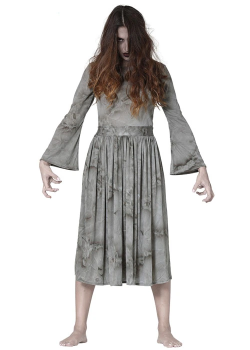 A creepy costume that is perfect for Halloween, this phantom costume looks just like the girl from The Ring and features a mottled grey long sleeved dress with buttons on the neck. This costume comes in one standard size that ties in on the waist to fit a UK dress size 10-14.