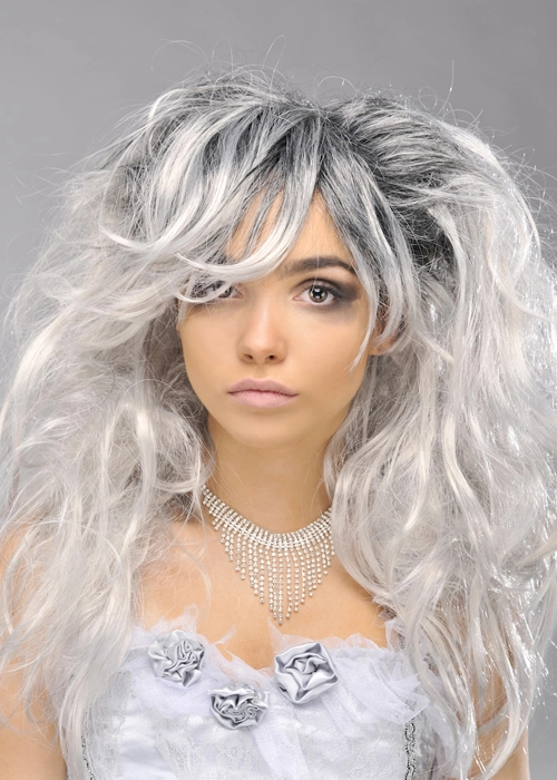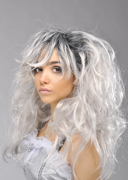 A pretty gothic style long length grey wig! Perfect for any ghostly Halloween costume and is supplied on an elasticated net to fit different sizes.